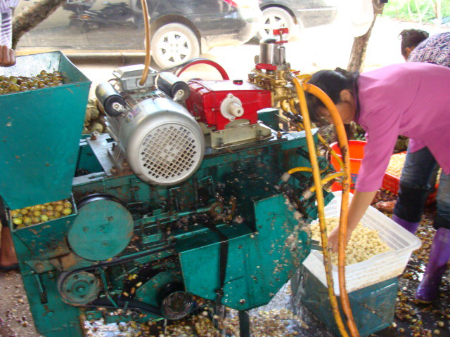 近日,由縣科技局資助引進(jìn)二臺蓮子剝殼去膜一體機在黃埠陳余中試,喜獲成功,深受賢河、大余、陳余、桂陽沿線四個村的蓮農(nóng)的歡迎。該機已24小時全天候運行了一個星期,真正實現(xiàn)了蓮子一次性脫殼去膜的機械化、工廠化加工,從測試的效果看每小時可加工蓮子30公斤,脫殼率達(dá)97%以上、脫皮率95%以上、破損率在3%以下。該產(chǎn)品顛覆了傳統(tǒng)的蓮子脫殼去膜機理,采用自動定位、定時、皮帶輸送、單粒切割、彈性擠壓脫殼,高壓水流柔性摩擦去皮,整個過程一體化完成。