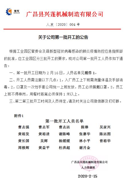 聯(lián)系我們2020年興蓮機(jī)械已開工 |
